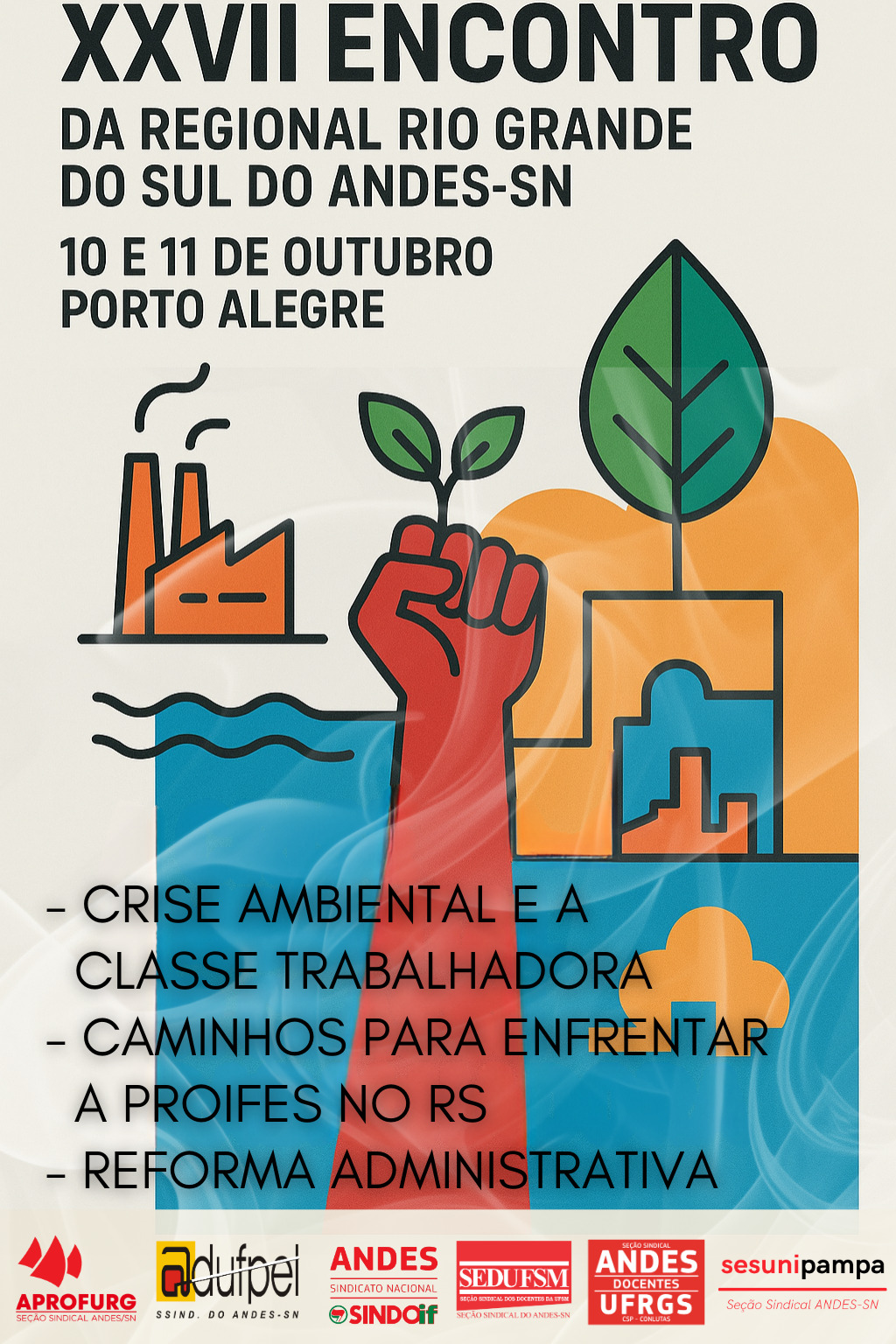 Nos dias 10 e 11 de outubro acontece na capital gaúcha Porto Alegre, o XXVII Encontro da Regional RS do ANDES-SN. O evento vai abordar temas como a crise ambiental, os caminhos para enfrentar a Proifes no RS e a Reforma Administrativa.