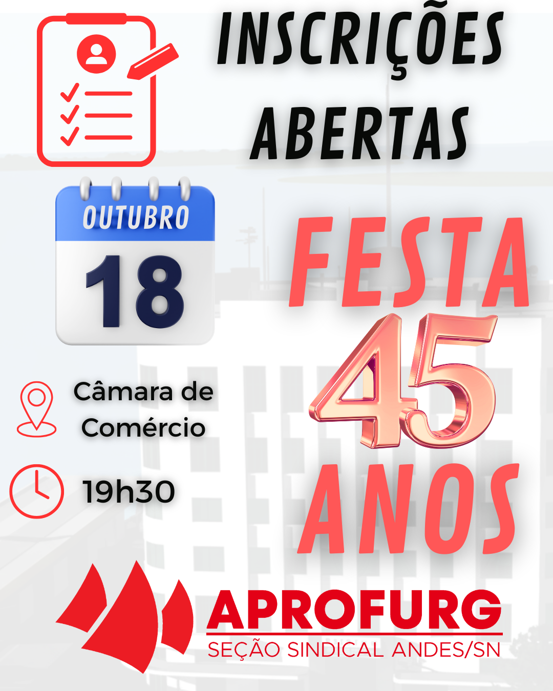 Link para inscrição https://tinyurl.com/45ANOSAPROfesta